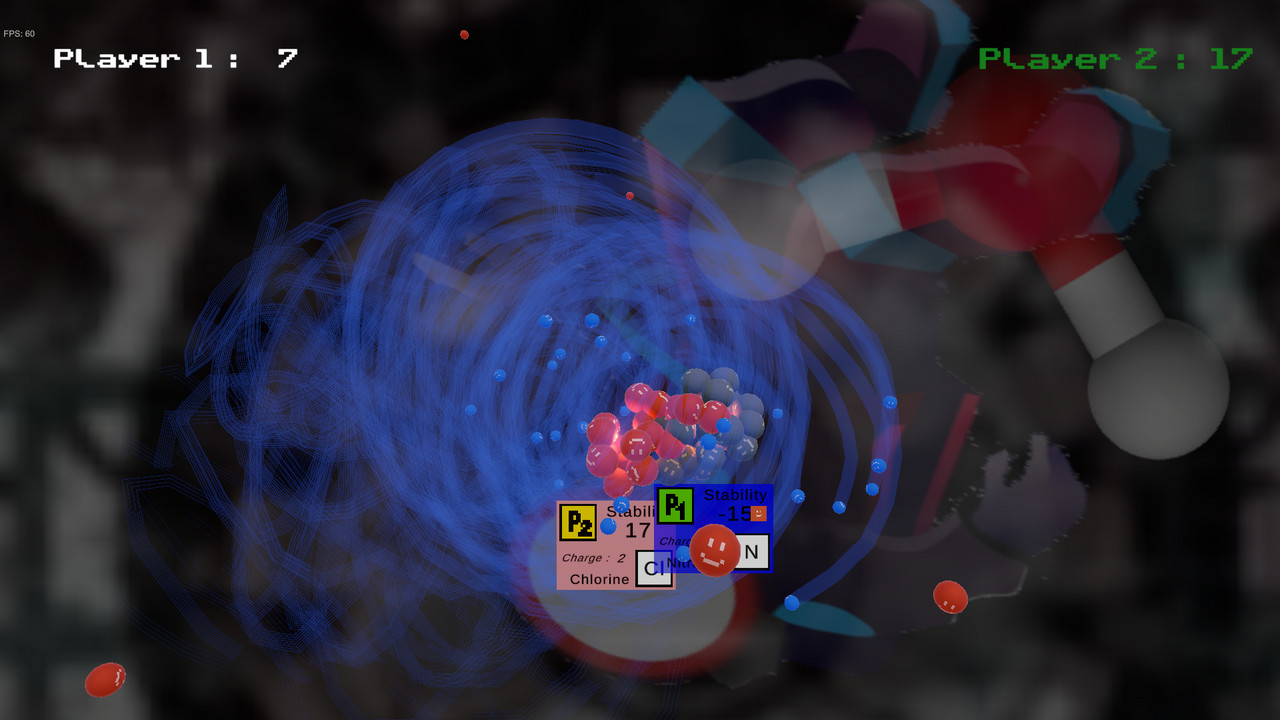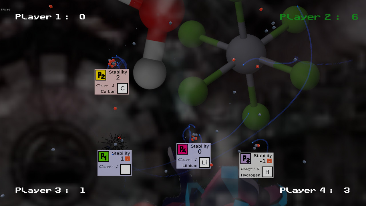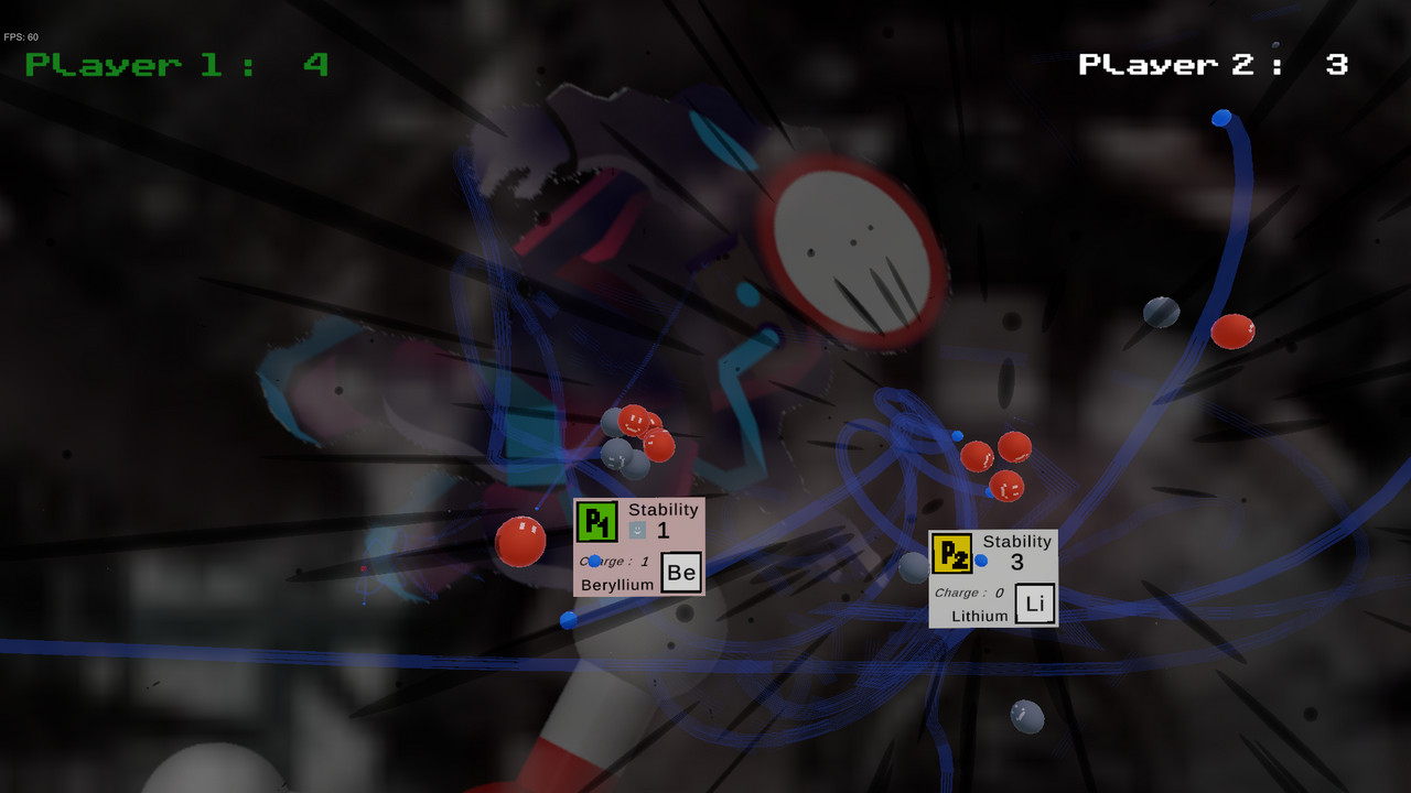 Atomix is a multiplayer game (up to 4 players) that involves keeping balance (stability and charge) within your atom by collecting subatomic particles.